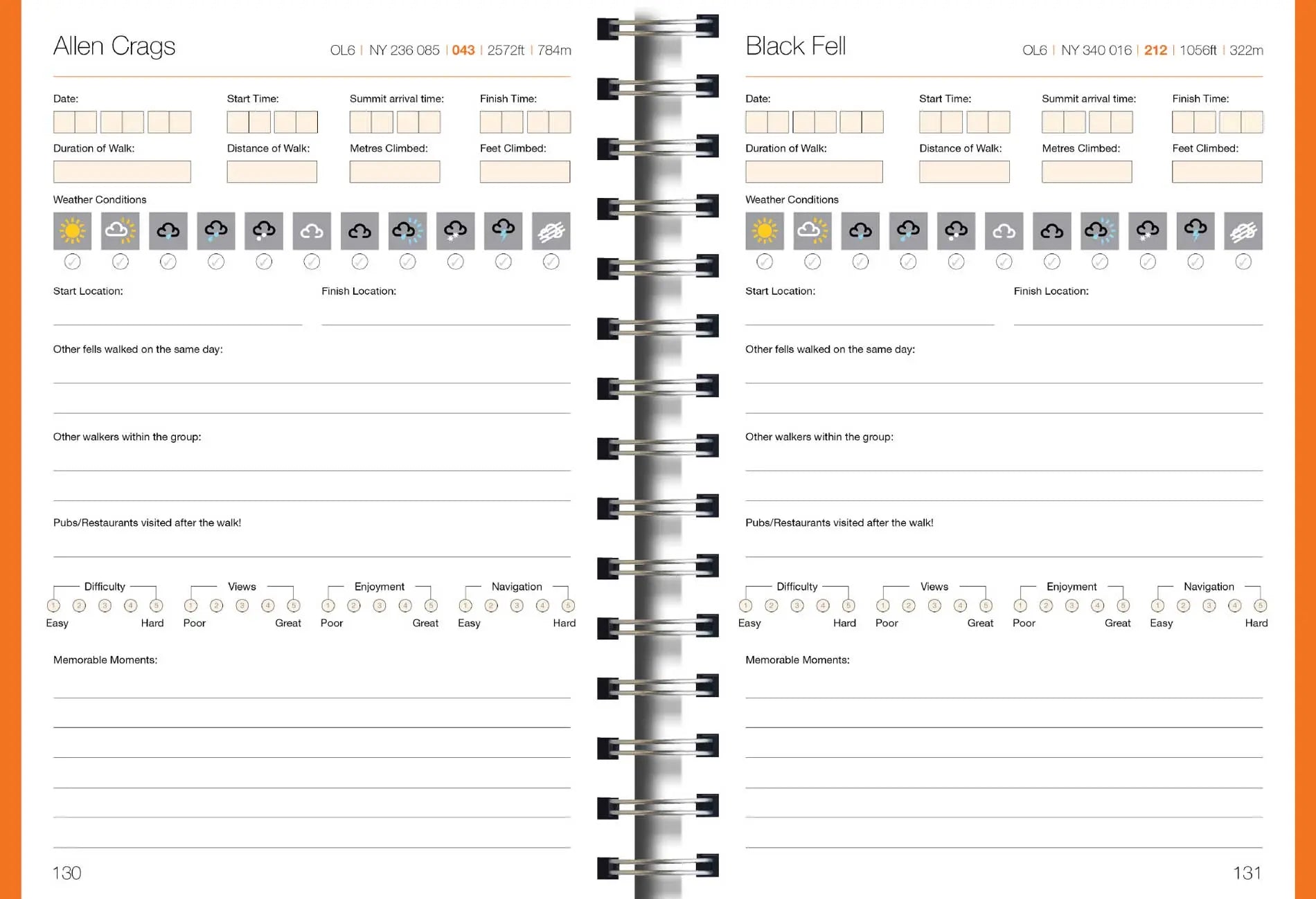 This beautifully designed 262 page Wainwright Fells Tick List Book is a must for all serious Fell Baggers. There is simply no better companion for a fell walker than this Tick List Book. Whether you’re setting out on your very first Wainwright or adding to a lifelong record of walks, The Wainwright Fells Tick List Book becomes an ever growing personal archive of your journey walking the magnificent Lakeland fells. Over time, its pages will develop into a personal memoir of your journeys and adventures on the fells. A unique record of effort, discovery, achievement and memories. Wiro-bound for ease of logging your adventures this is the perfect way to keep those treasured memories forever.